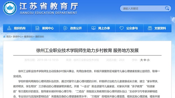 徐州工业职业技术学院师生主动投身乡村振兴事业,利用自身优势,积极开展服务区域留守儿童心理健康发展公益项目,取得一定成效。