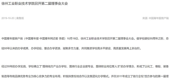 10月19日,徐州工业职业技术学院召开第二届理事会大会。值学校建校55周年之际,总结55年以来的办学成果、办学经验,整合办学资源,凝聚多方力量,共同推进学校高水平建设、高质量发展再上新台阶。