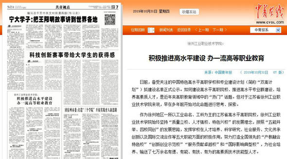 【中国青年报】徐州工业职业技术学院:积极推进高水平建设 办一流高等职业教育