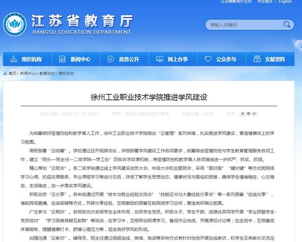 为统筹做好疫情防控和教学育人工作,徐州工业职业技术学院推出“云管理”系列举措,扎实推进学风建设,营造健康向上的学习氛围。