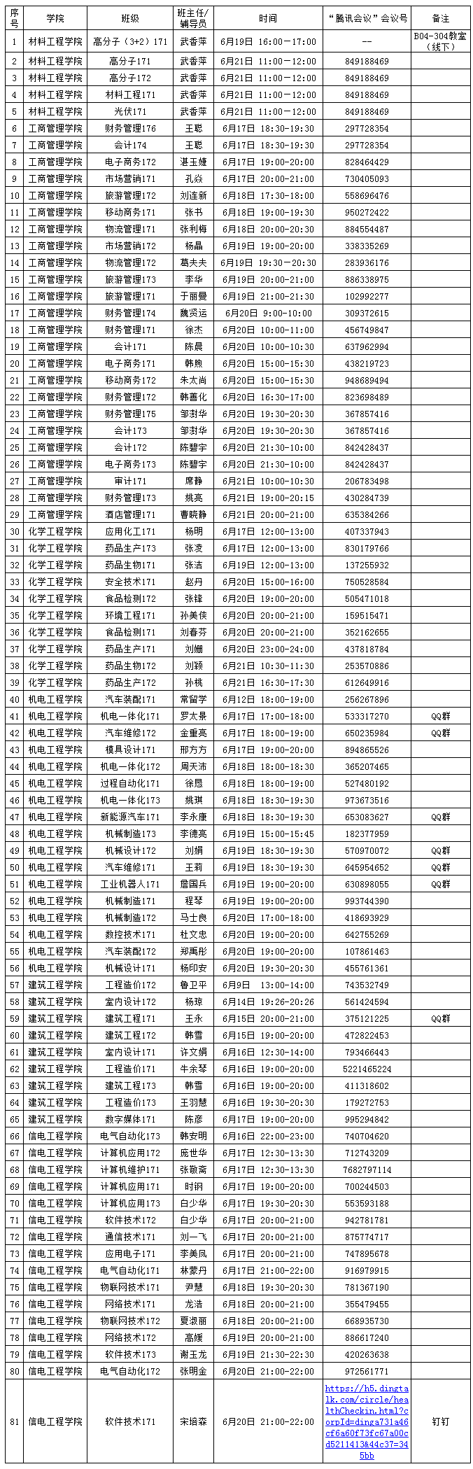 毕业班级在毕业前,由班主任组织召开一次以“感恩母校云上传情,爱国励志逐梦远航”为主题的“云班会”,请大家不要缺席。具体安排如下: