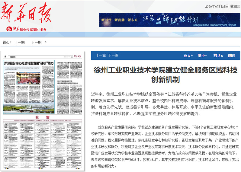 近年来,徐州工业职业技术学院以全面落实“江苏省科技改革30条”为契机,聚焦企业转型发展需求,解决企业技术难点,整合校内外科技资源,创新科研与服务的体制机制,着力先行先试,建成需求引导、多元共建、体系开放、水平先进的新型研发组织,推进科研成果转移转化,不断提高学校服务区域经济发展的能力。