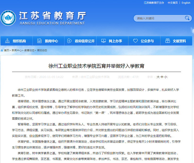 徐州工业职业技术学院紧紧围绕立德树人的根本任务,立足学生德智体美劳全面发展,加强顶层设计,多措并举,扎实做好入学教育工作。