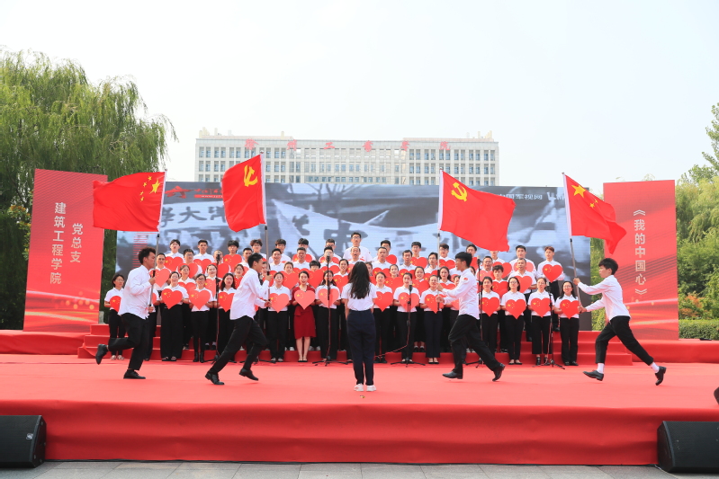 歌咏比赛在大学生纯蓝吉他社、大学生合唱团激情洋溢的《国际歌》弹唱中拉开序幕。各党总支先后歌唱了《太行山上》、《党啊,亲爱的妈妈》、《我的中国心》、《我们走在大路上》等经典曲目,校大学生艺术团真情演绎了舞蹈《绣红旗》。