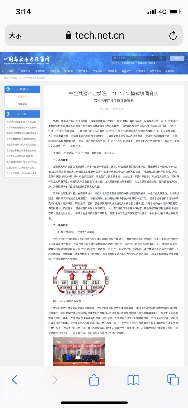 新能源汽车产业飞速发展,但面临高质量人才短缺、职业教育产教融合深度不足等显著问题。徐州工业职业技术学院积极探索并与浙江吉利汽车有限公司共建吉利汽车产业学院,同时吸收N家产业链相关企业和行业资源,形成了“1+1+N”校企合作新模式,开展深度校企合作产教融合。徐州工业职业技术学院以产业学院为合作平台,与多方协同育人,资源共建共享,建设新能源汽车技术实训基地,开展学徒制工学交替人才培养改革,建设校企混编教学团队,共建新能源汽车技术教学资源,共同开展产学研培服务等,形成了一系列有效成果,为企业培养了大量用得上、留得住、发展好的高素质技术、技能型人才。