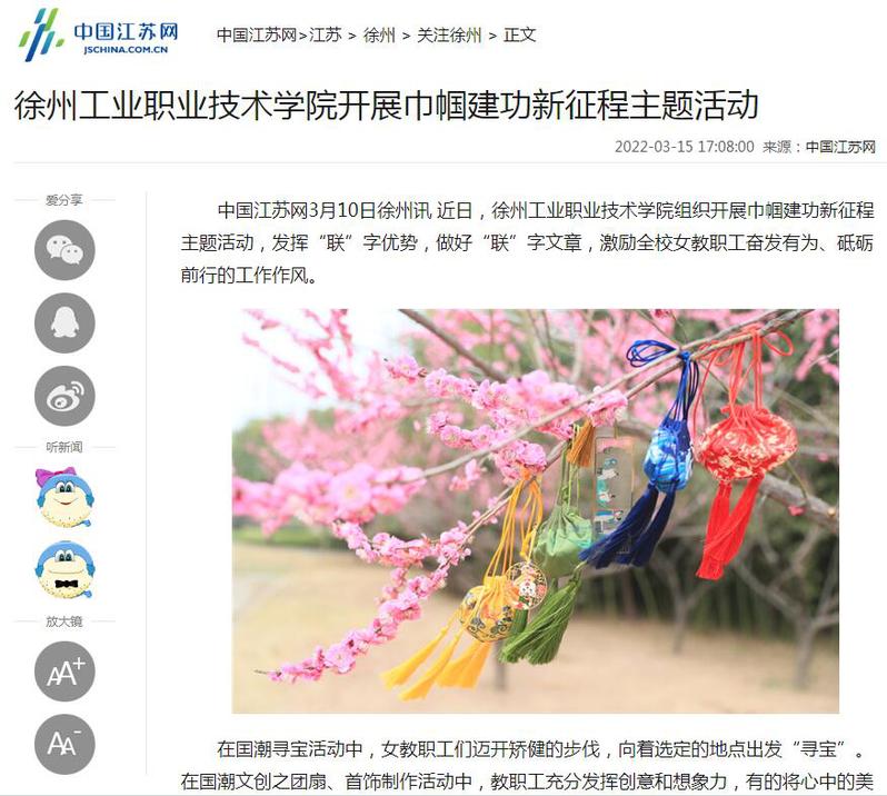 近日,徐州工业职业技术学院组织开展巾帼建功新征程主题活动,发挥“联”字优势,做好“联”字文章,激励全校女教职工奋发有为、砥砺前行的工作作风。