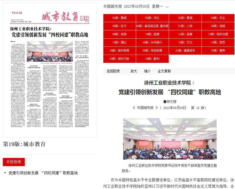 “四校同建”综合改革与创新实践是徐州工业职业技术学院积极应对高等职业教育发展新形势、新任务,在不断探索和实践中形成的凝练和概括,不仅为学校的发展注入了强大发展动力,也为学校的发展营造了良好的职教生态,使教学资源、创新要素、追求卓越等在产业与教育、学校与社会、教师与学生、课内与课外自由流动,发挥好创新领域的党建引领作用,形成高效的共享互通机制、积极向上的进取氛围,实现了学校高质量发展。