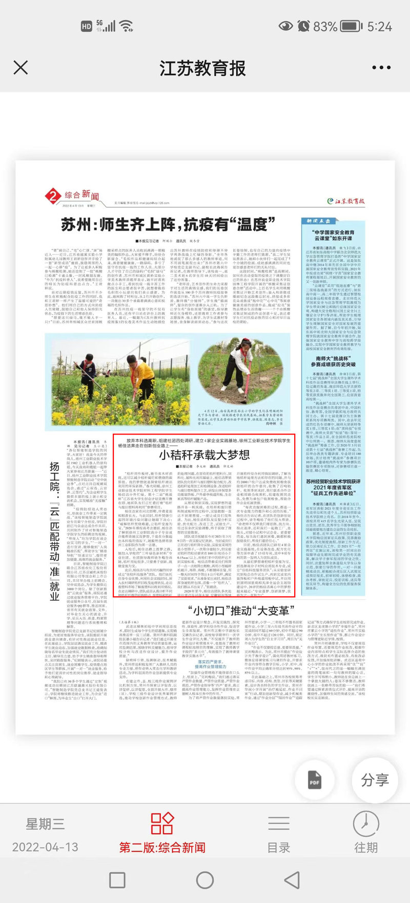 中国教育报(2022年4月13日)