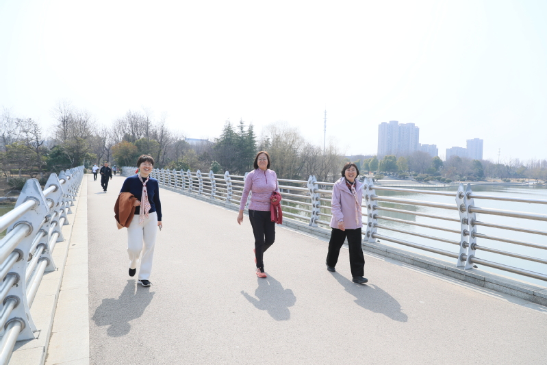 在和煦春风中,刘莹宣布活动开始。随着健步走活动序幕的拉开,女职工们个个英姿焕发,热情高涨地健步行进在玉潭湖环湖路上。一路上欢声笑语不断,玉潭湖面波光粼粼,湖畔的柳枝在春风中肆意舞动,大家一边欣赏着沿湖美景,拿出手机拍照记录,并与同事合影留念,尽享健康运动带来的身心愉悦;一边相互鼓励,你追我赶,全面展现出机关女职工朝气蓬勃、奋发进取的精神风貌,为春日的玉潭湖增添了一道靓丽的风景线。