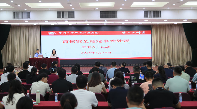 为全面提升学工队伍安全防范意识与应急处突能力,近日,我校在图书馆报告厅举办第一期学工大讲堂,邀请徐州市公安局内保支队冯涛担任本期主讲人,全体专职辅导员、部分班主任、各二级学院副书记、学工处及保卫处相关人员、“一站式”学生社区宿管工作人员共计171人参加了本次培训。本次培训会由学工处处长张妍妍主持。