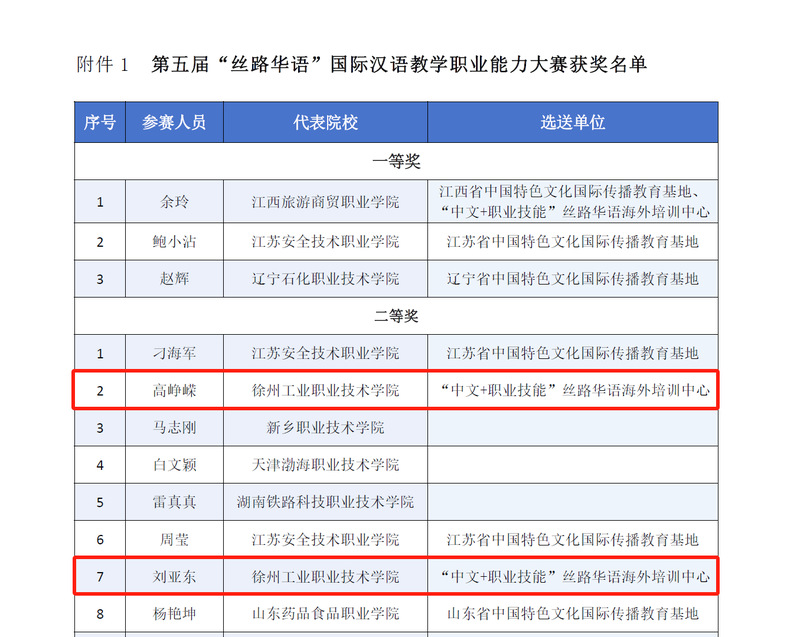 近日,由“一带一路”国家院校和企业交流协会、汉语桥俱乐部(埃及开罗站) EducationPlus 国际职业教育大会暨展览会组委会主办的“丝路华语”赛事圆满落幕,我校教师高峥嵘、刘亚东在第五届“丝路华语”国际汉语教学能力比赛中分别荣获教师组二等奖;留学生ITSOUA DESTIN CHRIS MERVEILLES在第四届“丝路华语”世界大学生国际汉语大赛中荣获学生组三等奖。