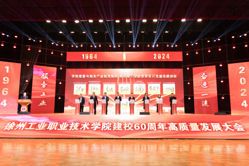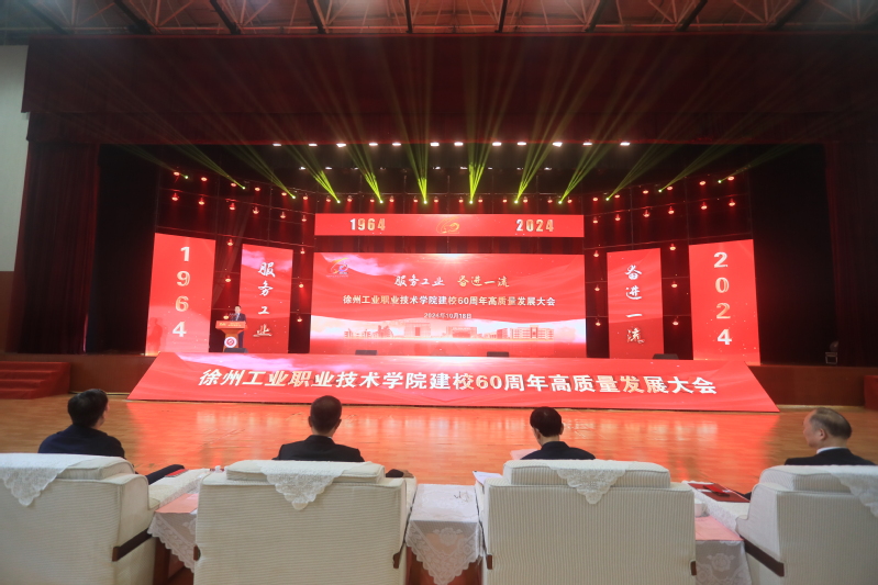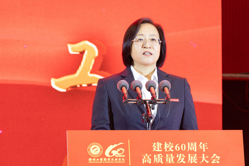 党委书记刘莹在致辞中表示,六十年风雨兼程,学校从1964年创办的徐州市轻化工职业学校,发展到省属“国家级重点中专校——徐州化工学校”再到“国家‘双高计划’建设单位——徐州工业职业技术学院”,历经三次更名与转型,以优质的职业教育报国的初心未改,“质量立校,人才强校,特色兴校”的办学理念未改,“契合产业办专业,校企合作育人才”的培养理念未改,与国家发展同向同行、同频共振,开拓进取、薪火相传,用奋楫笃行的姿态,实现了一次次历史性跨越,累计为社会培养、输送了近九万名高素质技术技能人才。