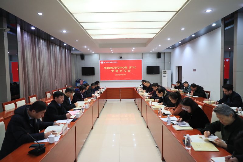 12月27日,在图书馆视频会议室召开了2024年党委理论学习中心组(扩大)专题学习会。学校党委理论学习中心组成员、党总支(直属党支部)书记参加学习,会议由党委书记刘莹主持。
