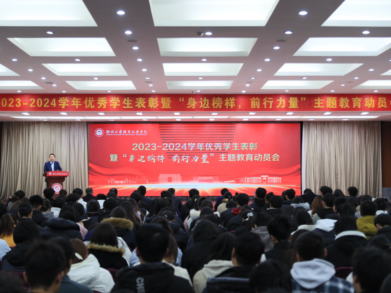 为树立先进典型,发挥榜样力量,营造积极向上的育人氛围,引导全体学生立志书写挺膺担当的青春篇章,12月27日下午,我校2023-2024学年优秀学生颁奖典礼暨“身边榜样,前行力量”主题教育动员会在图书馆报告厅举行。校长鲍桂楠、副校长曾凡远、党委委员、组织部部长乔向东、党委委员、教务处处长侯亚合,相关职能部门负责人、各二级学院党总支书记、副书记、班主任、辅导员代表、获奖学生代表及300余名学生代表参加了表彰大会。大会由学工处处长张妍妍主持。