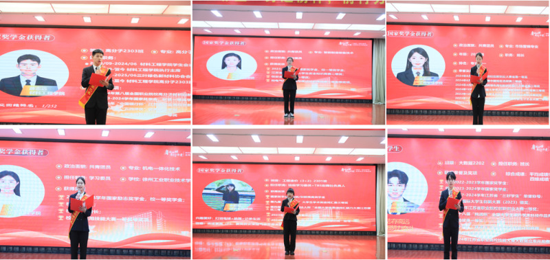 表彰大会上,13名优秀学生代表依次走上舞台,用生动的事例分享了他们追光而行的故事。他们结合自身经历和成长收获,讲述了自己如何将兴趣爱好转化为学业的基石,如何在乡村振兴的志愿服务中实现自我价值,如何在创新创业的道路上攻坚克难,如何在学生工作中无私奉献,以及如何在科研创新的探索中坚持不懈的奋斗故事,不仅展现了工院学子自强不息,勇于拼搏的精神,更是激励了现场每一位学子,只要有梦想、肯行动、能坚持,就能够在各自的领域中找到属于自己的位置,发光发热。