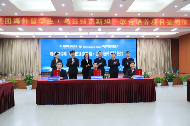 鲍桂楠分别与徐工道路机械事业部、徐州徐工传动科技有限公司、乌中合资乌兹徐工有限责任公司、徐州工程机械技师学院等单位代表签署海外留学生(乌兹别克斯坦)联合培养协议。协议内容涵盖了培养模式、培养对象、专业和学制等多个方面,双方就共同培养海外留学生达成了广泛共识。