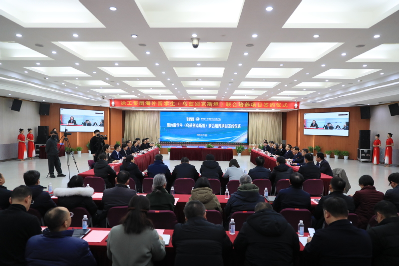 1月13日,我校在图书馆报告厅隆重举行徐工集团海外留学生(乌兹别克斯坦)联合培养项目签约仪式。徐工集团党委副书记、工会主席甄文庆,徐工国际事业总部副总经理李智,徐工道路机械事业部党委副书记、工会主席、纪委书记杨丽,徐州徐工传动科技有限公司党委副书记、工会主席、纪委书记马鸣,乌兹别克斯坦的乌中合资乌兹徐工有限责任公司总经理伊斯查诺夫·阿里别克、副总经理苏海洋,徐州工程机械技师学院党委书记、院长张丽娜,我校党委书记刘莹、校长鲍桂楠等全体校领导、中层干部正职及项目领导小组成员参加活动。签约仪式由副校长曾凡远主持。