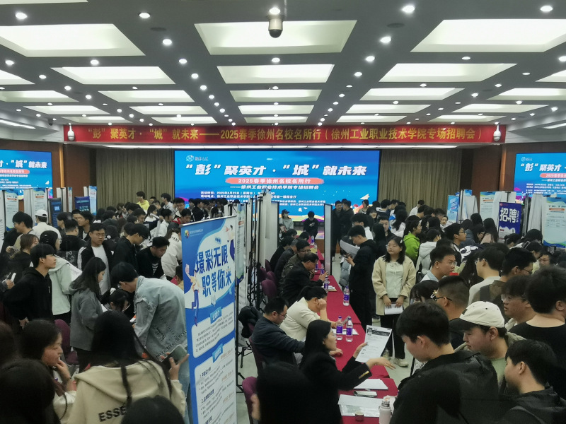 为进一步深化合作,促进校地企供需对接,推动毕业生高质量充分就业,3月23日上午,我校与徐州市人社局联合举办“彭”聚英才 • “城”就未来2025春季校园专场招聘会。我校近两千名毕业生参加了招聘活动,校地举办了对接交流活动。