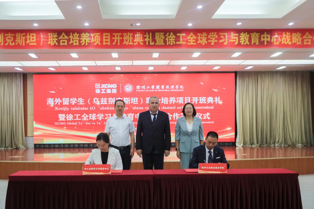 为挖掘因地制宜的职业教育合作新潜力,今年1月,徐州工业职业技术学院与徐工集团、徐州工程机械技师学院创新“校企校”定制化培养新模式,共同签订海外留学生(乌兹别克斯坦)联合培养项目协议,共建优质生源基地、共组高水平师资、共建高端产教实训基地、共商专业培养方向、共研培养评价资源、共育国际化技能人才。