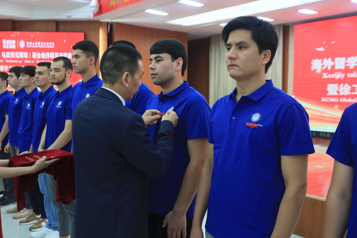 新华报业·中国江苏网讯(记者 张扬 通讯员 唐梦)6月5日,徐州工业职业技术学院校长鲍桂楠将一枚校徽别在乌兹别克斯坦留学生胸前,学校“求真、求实、求精、求新”的校训,将跨越天山山脉,最终融入徐工在乌兹别克斯坦的生产线。这一刻,徐州这座“中国工程机械之都”的职教基因,正式注入中亚产业腹地。