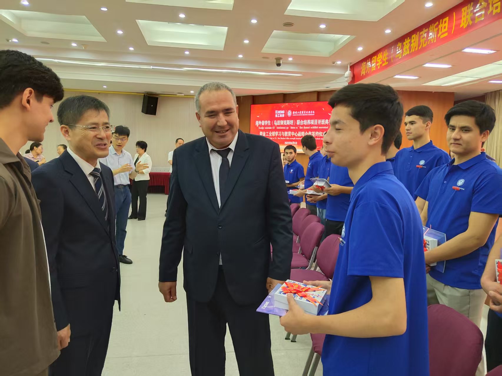 身为局长的萨杜拉耶夫·齐尤丁,最关心学生们学习生活的情况。仪式后,他和学生们交流了近10分钟。19岁的阿兹第一次出国,就来到徐州。“学校很好,吃得也习惯,各方面都很好。”阿兹的话,道出了大家的心声。齐尤丁局长很欣慰,表示放心了,后续将推动下批留学生来到徐州。