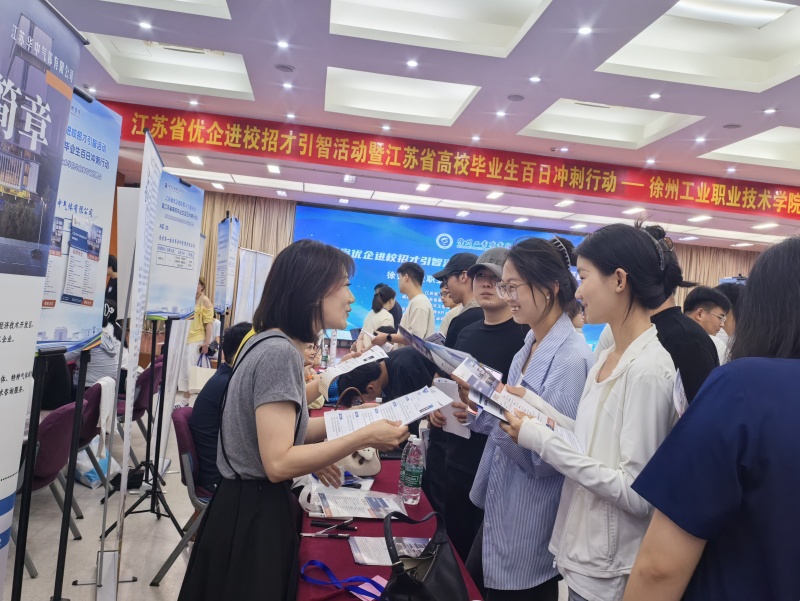 政校协同筑平台,校企合力促就业。6月15日上午,江苏省“优企进校,招才引智”系列活动暨2025届高校毕业生百日冲刺——徐州工业职业技术学院毕业季专场招聘会在我校图书馆报告厅成功举办。徐工集团、苏宁集团、中国核工业建设集团、南京奥特佳新能源、海康威视、华灿光电等100余家知名企业参会,涵盖新材料、化工技术、高端装备、电子信息、生物医药、智能制造等多个行业领域,提供岗位3500余个。副院长孙健身到会指导并与用人单位和师生深入交流,徐州市工信局、鼓楼团区委、鼓楼武装部相关领导莅临指导,并作就业政策现场咨询服务,我校两千名师生参加了招聘活动。