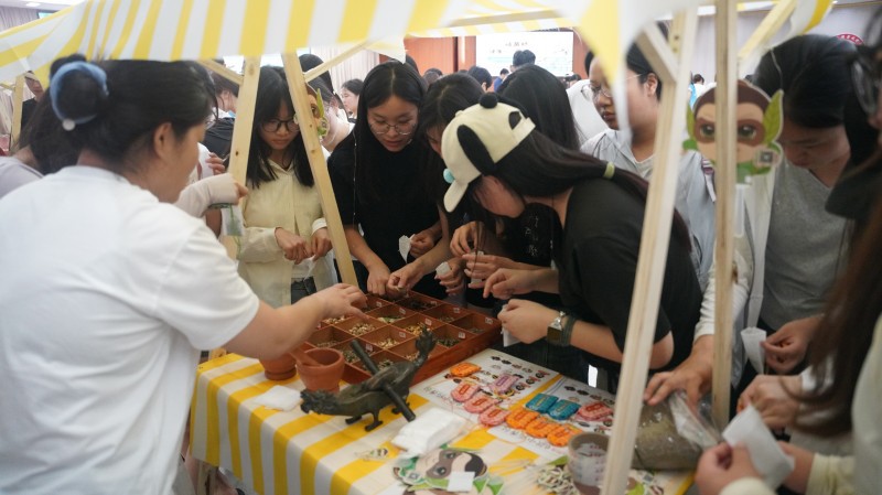 活动现场,最受学生热捧的当属“岐黄手作·指尖国医”文创实践区。文创实践区艾叶薄荷香囊、UV胶封存药材书签、中药耳饰等创意作品琳琅满目。生物制药专业学生亲手研磨药材制作合香珠手串,将佩兰、丁香等草药转化为时尚配饰。“原来中医可以这么‘潮’!”参与香囊制作的学生感叹。药膳体验区同步推出酸梅汤、甘麦大枣茶等养生饮品,让“药食同源”理念融入日常。中医诊疗体验区人头攒动。中医专家通过脉象浮沉迟数解析体质虚实;现场义诊区正骨医师针对长期伏案导致的颈椎问题,以精准手法调整关节,现场响起清脆的复位声,学生直呼“手到痛消”;针灸区银针轻旋入穴,针对肩颈酸痛、失眠等常见症状施治,体验者感受着经络疏通后的温热流动。