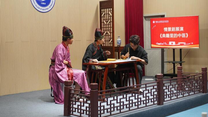 化学工程学院学子自编自演情景剧《典籍里的中医》,用沉浸式舞台重现张仲景等医家经典故事,让古籍文字跃动为鲜活影像,引发全场共鸣。