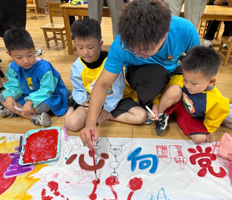 童心绘就感党恩,筑梦未来薪火传。实践团深入当地小学开展“红心向党”主题教育。在“红色故事课堂”中,实践团成员用生动语言讲述南湖红船的故事,并结合资助政策诠释“党旗下的温暖”。在“绘画课堂”中,引导孩子们以“党的光辉照我心”为主题创作,共同用画笔描绘出在党的关怀下茁壮成长的幸福画卷。活动通过讲好红色故事、绘就感恩心声,让爱党爱国的种子在青少年心中生根发芽。