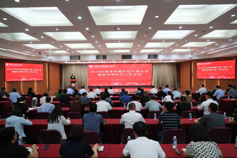 9月4日上午,我校在图书馆多功能厅召开秋季学期中层干部大会暨新学期开学工作会议,进一步凝聚共识,谋划下半年重点工作。全体校领导和中层干部参加会议,党委书记刘莹主持大会并作总结讲话,校长鲍桂楠总结暑期工作并部署下半年重点工作。