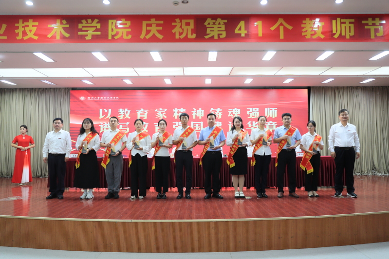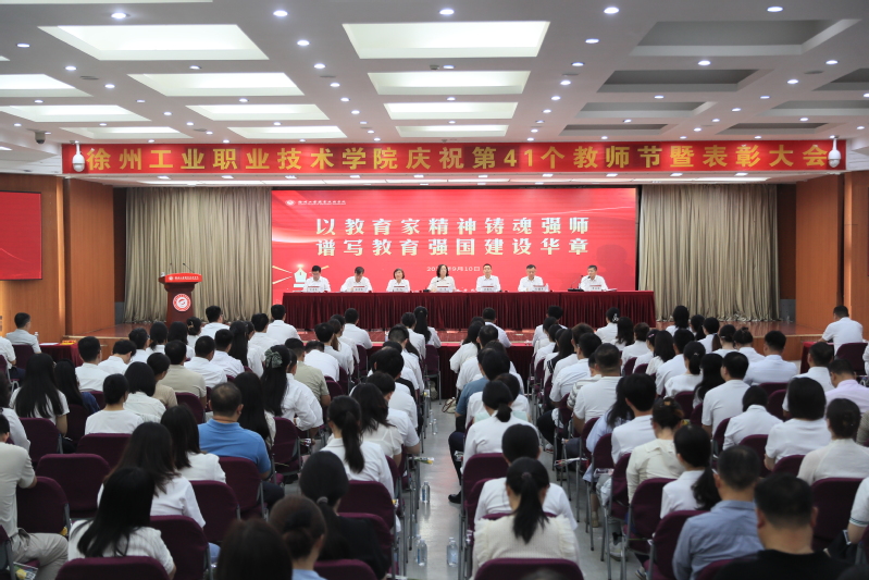 9月10日下午,我校在图书馆报告厅召开庆祝第41个教师节表彰大会。全体校领导、党委委员、“学生最喜爱的教师”“最受企业欢迎的教师”“服务徐工贡献突出的教师”“从教三十年教师”“协同育人优秀代表”、各党总支书记、二级学院(部)、职能部门负责人、新入职教师、教师和辅导员代表参加会议,大会由副校长曾凡远主持。