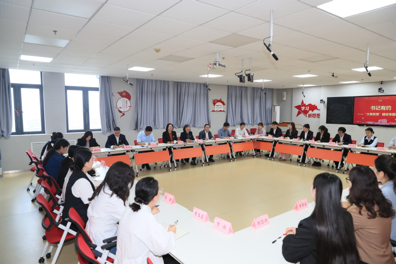 会议伊始,马克思主义学院院长王博作专题汇报。他从学院建设、课程体系、教学改革、师资队伍以及课程思政协同育人等方面进行了阐述,并表示,在学校“大思政课”建设中,马克思主义学院要切实发挥“主力军”作用,强化“粘合剂”和“催化剂”功能,以“大马院”发展格局,助力学校思想政治教育工作提质增效、落地生根。