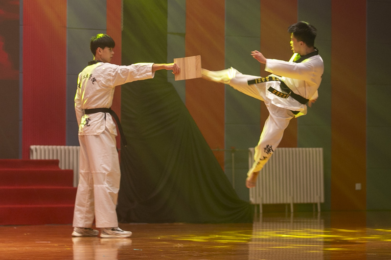 今年中国人民抗日战争暨世界反法西斯战争胜利80周年,舞蹈《永不凋零的花》重现东北抗联八位女战士英勇事迹,情景党课《等待》展现共产党员坚定信念,红色歌曲联唱串联《映山红》《我的祖国》等经典旋律,在艺术呈现中传承红色基因、厚植家国情怀。最后,全场师生共唱校歌,汇演在激昂歌声中圆满落幕。